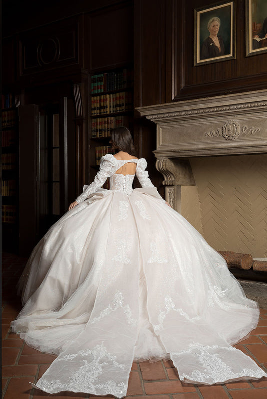 Embroidered Beads Featured A-line Wedding Gown with Mesh Long Sleeve GL3603 GLS BY GLORIA