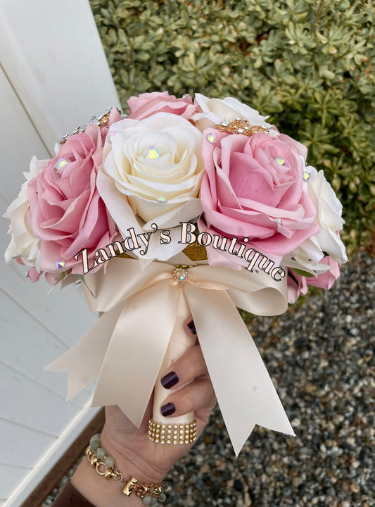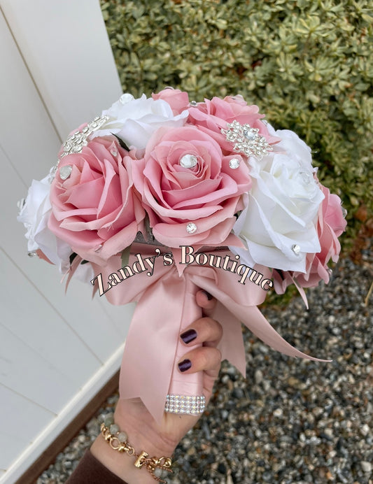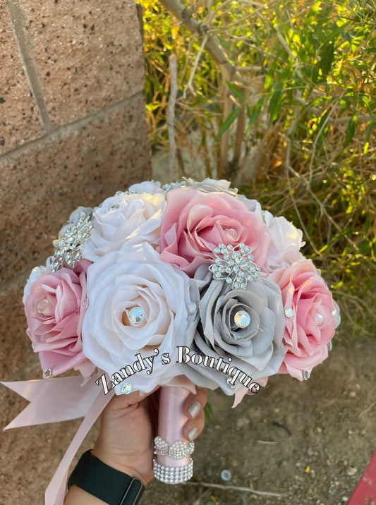 Silver, Blush and Cream Bouquet with Silver Brooches. BLSCR043 by MARINA’S CRAFT. PREORDER AVAILABLE!