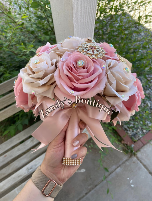 Blush with Gold Brooches and Horse Pendant Bouquet. BL030 by MARINA’S CRAFT. PREORDER AVAILABLE!