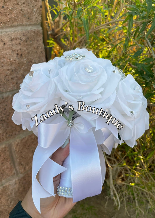 Small White Bouquet with Silver Brooches.WTE042 by MARINA’S CRAFT