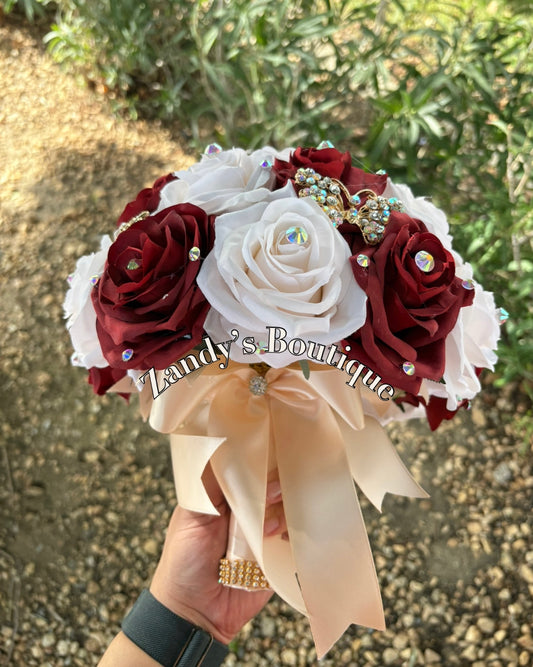 Burgundy, Ivory and Champagne with Gold Brooches. BURIVCH024 by MARINAS CRAFT. PREORDER AVAILABLE!