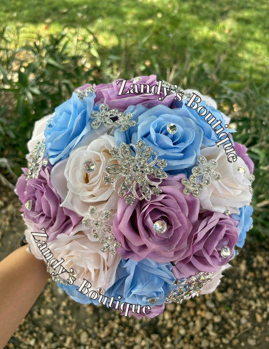 Cream, Lavender, and L.Blue with Silver Brooches. CRLLB045 by MARINA’S CRAFT.