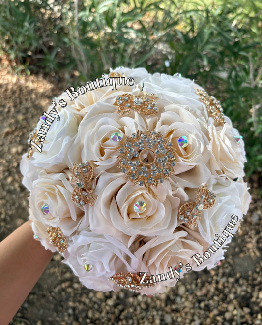 Champagne with Blush and Gold Brooches. CHBL041 by MARINA’S CRAFT. PREORDER AVAILABLE!