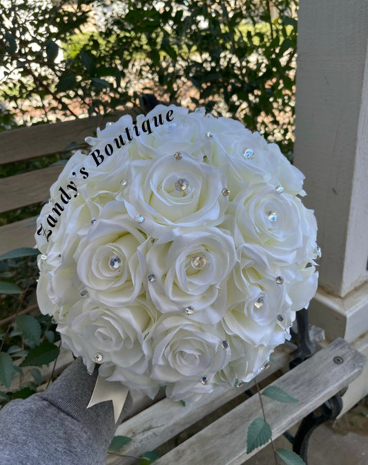 Ivory with Silver Diamonds Bouquet. IVY021 by MARINA’S CRAFT.