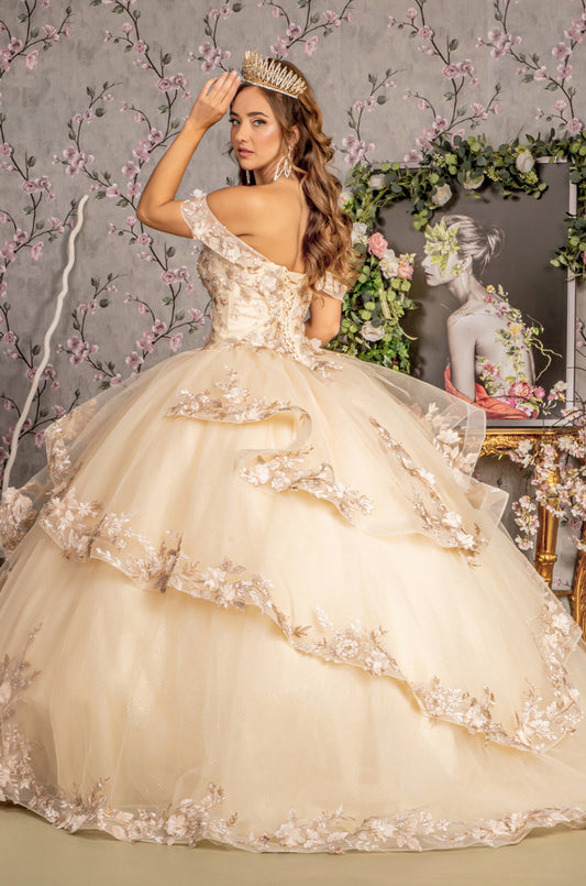 Jewel 3-D Butterfly Applique Off Shoulder Mesh Quinceanera Gown by Elizabeth K GL3112 (GLS COLLECTIVE)