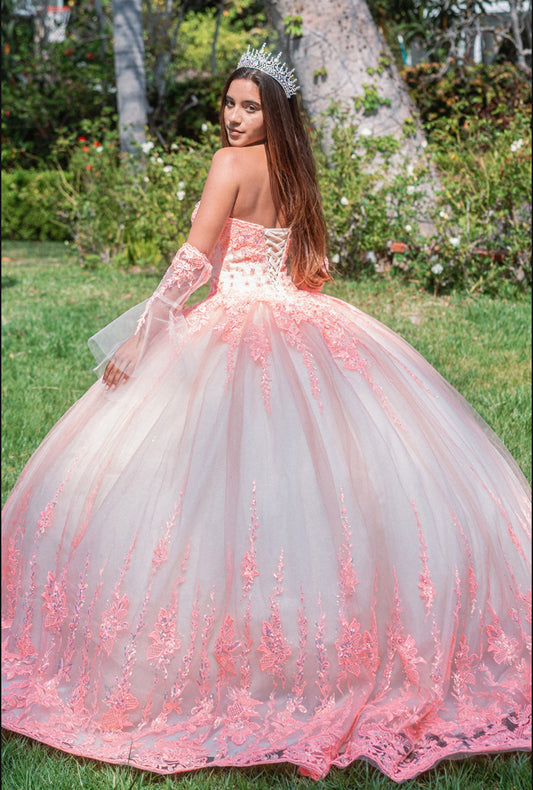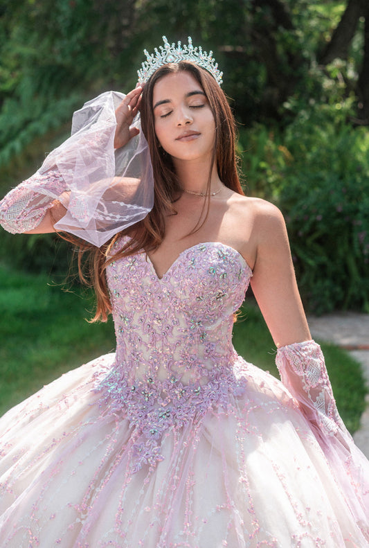 Jewel Mesh Quinceanera Dress w/ Mini Bag and Separate Long Sleeves by Elizabeth K GL3073 (GLS COLLECTIVE)
