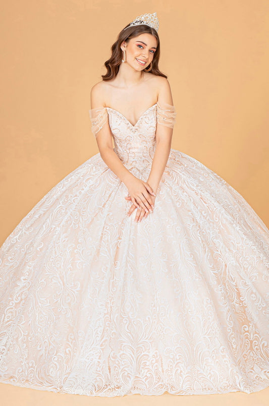 Jewel Sequin Sweetheart Off Shoulder Mesh Ball Gown. Gl3240 GLS by Gloria