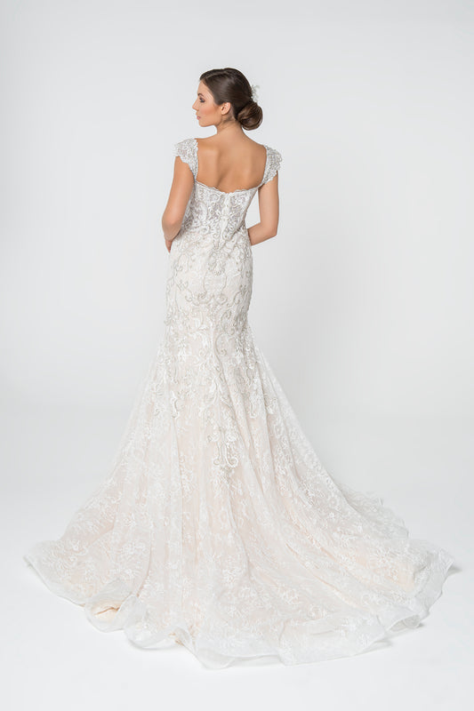 Jewel and Embroidery Embellished Mesh Wedding Gown GL2822 (GLS) BY GLORIA