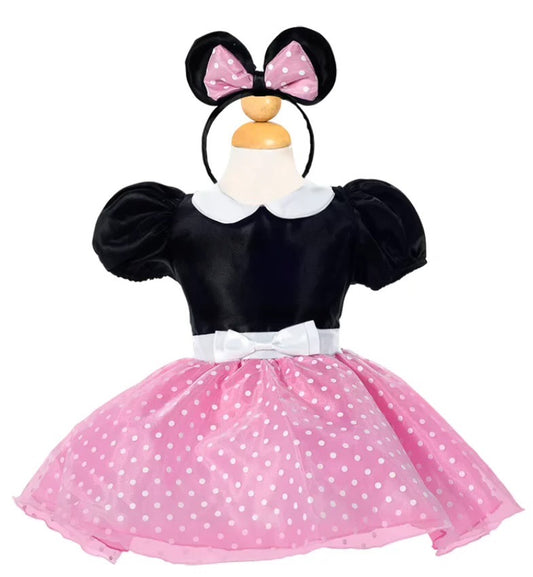 LP-07 BY Alegría imports inspired polka dot dress up for girls includes black pantyhose and headband is made of silk and is perfect for a party theme or a magical vacation.