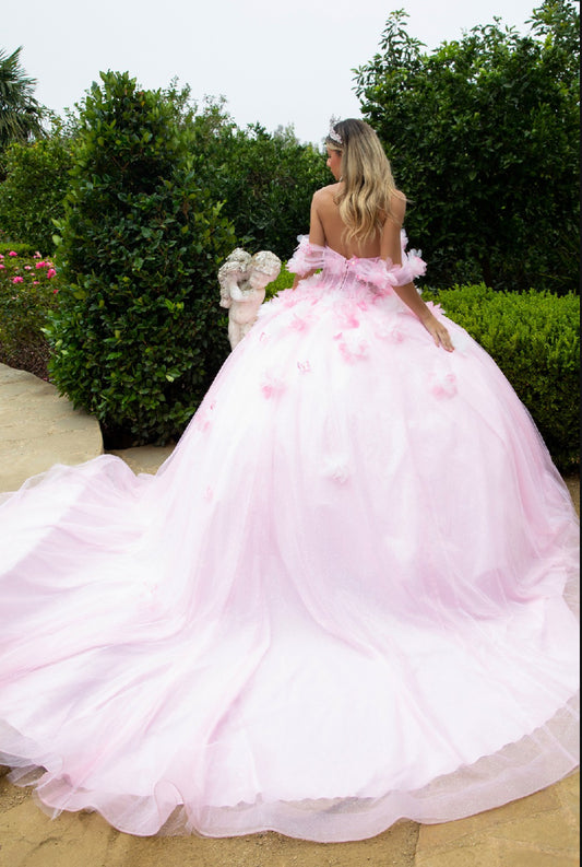Madeline 3D Floral Off Shoulder Quince Dress without Cape. PQ1002 BY Bella Couture