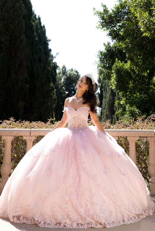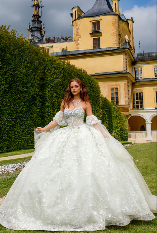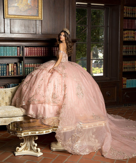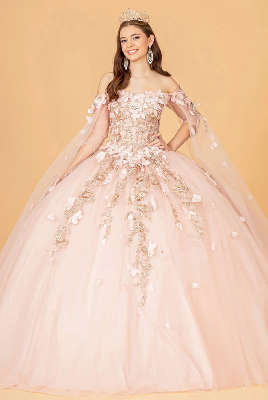 Off Shoulder Mesh Quinceanera Gown w/ Shoulder Side Mesh Drapes. GL3075 GLS BY ELIZABETH K
