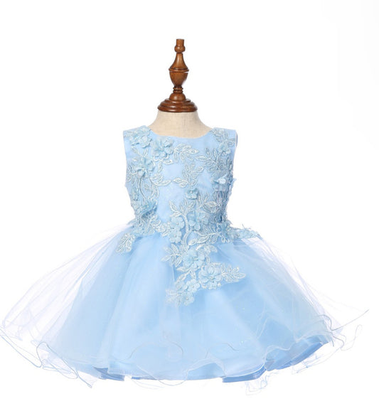 Super cute flower lace adorned with 3D flowers baby tulle dress. 9125B “LALA ERINA" BY CINDERELLA COUTURE
