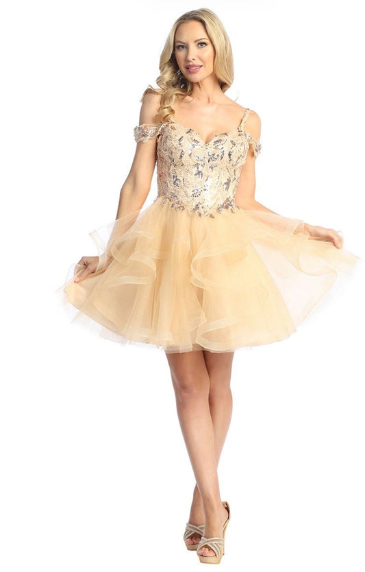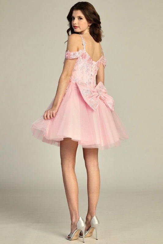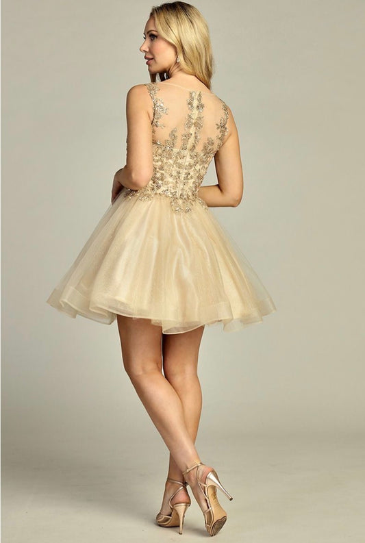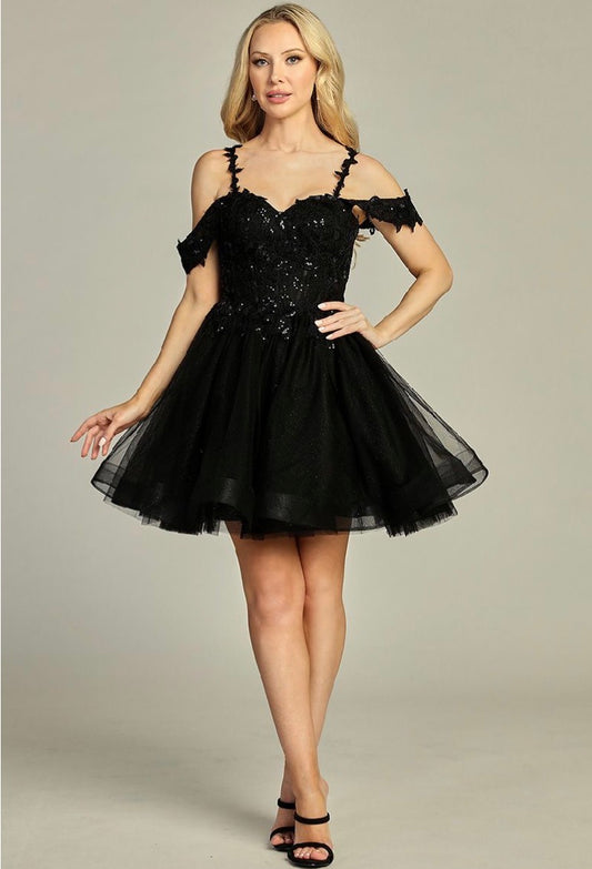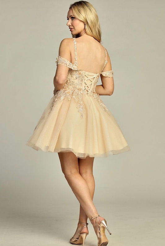 Sweetheart Illusion Top A-line Short Dress. 6287L BY LET´S CORP