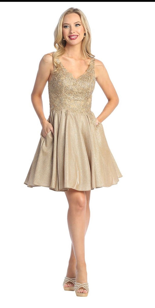 Lace Illusion Top A-line Short Dress. 6282L BY LET´S CORP
