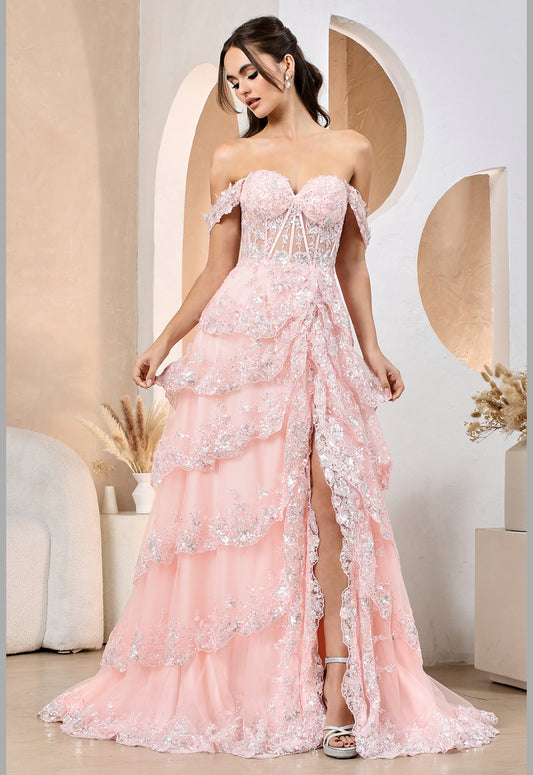 Off shoulder sparkly dress fitter. 3189 BY ADORA DESIGN