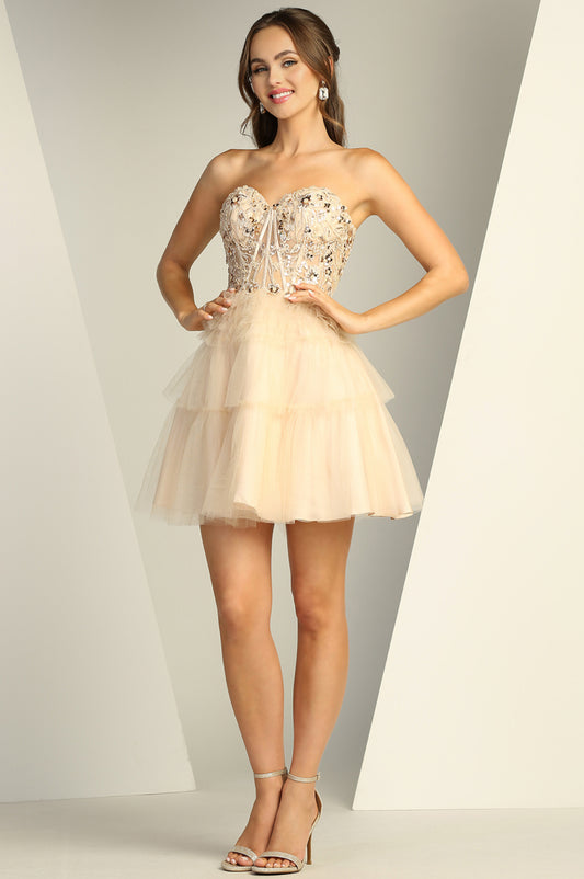 Beaded stones with a Corset, Off the Shoulder, A-Line Short Dress. 1004 BY ADORA DESIGN