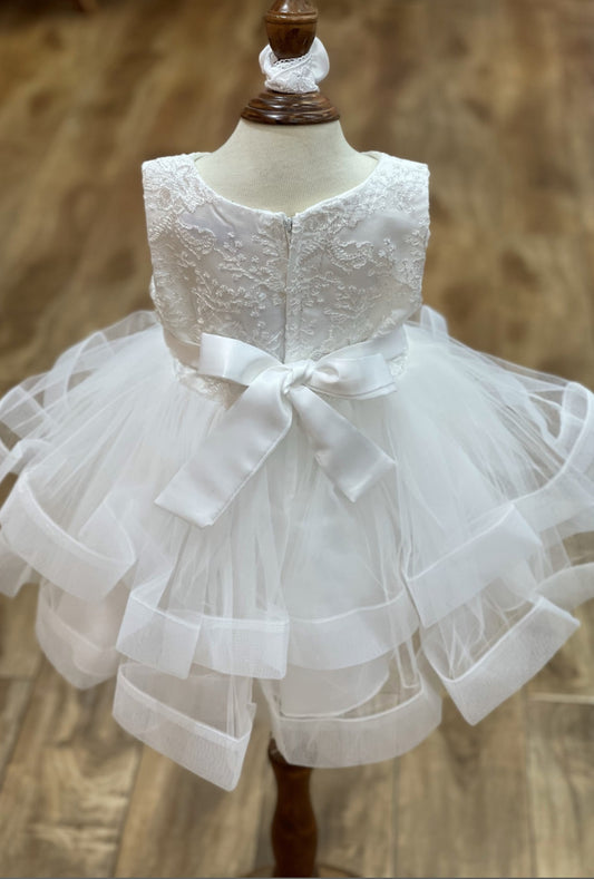Beautiful adorned with 3D flower lace with tulle skirt baby dress. "LALA ERINA" 9126B BY CINDIRELLA COUTURE