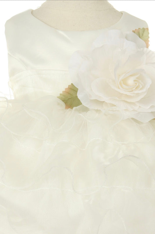 Elegant sleeveless lace with a huge rose faux flower, layered tulle skirt baby dress. "LALA ERINA" 9138B by Cinderella Couture
