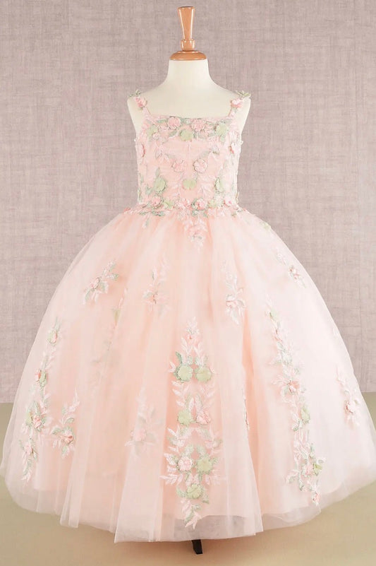 3D Floral Applique Mesh Kids Dress, GK107 GLS BY ELIZABETH K