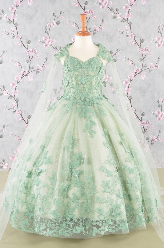 3-D Butterfly Sequin Mesh Kids Dress w/ Detachable Long Mesh Cape. GK114 BY ELIZABETH K
