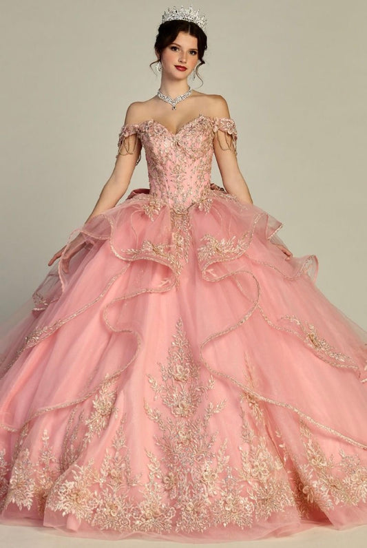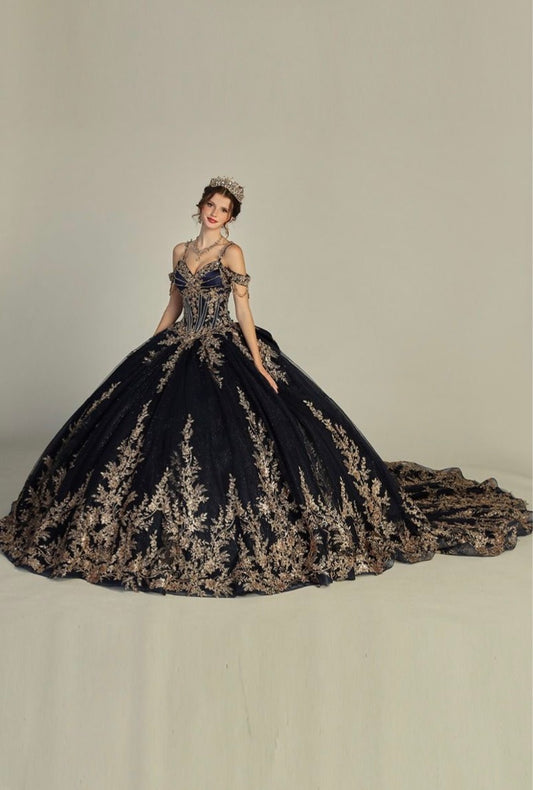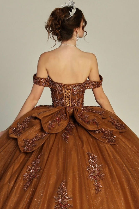 Golden Elegance Quince Dress. PQ1102 BY BELLA COUTURE