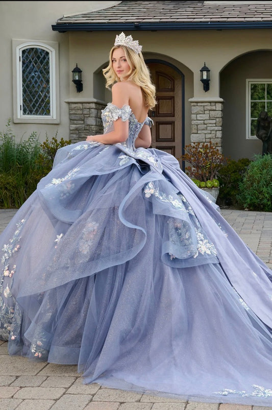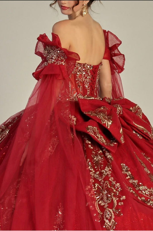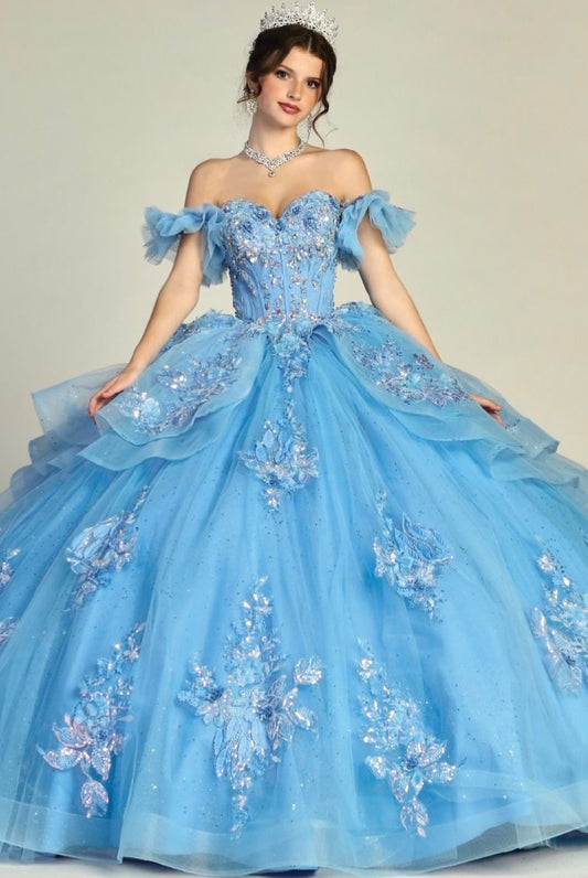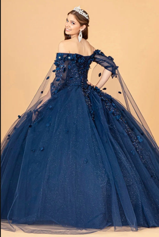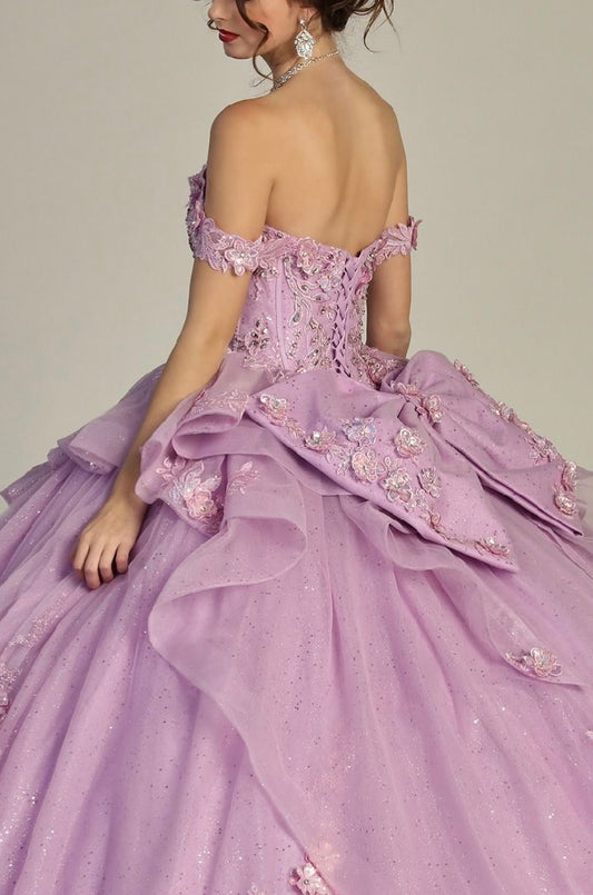 Off Shoulder Mesh Quinceanera Gown w/ Shoulder Side Mesh Drapes. GL3075 GLS BY ELIZABETH K