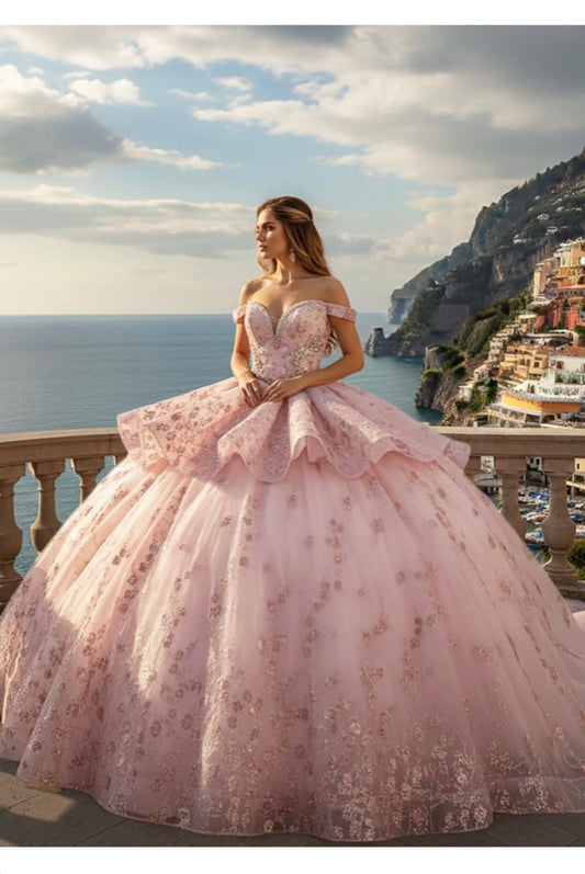 Elegant See-Through Corset Glitter Quince Dress. 8095Q LET´S CORP