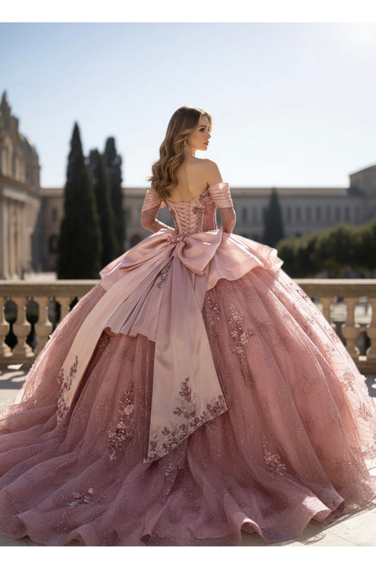 Elegance Quince With beautiful Bow, Detachable sleeves. 8103Q BY LET´S CORP